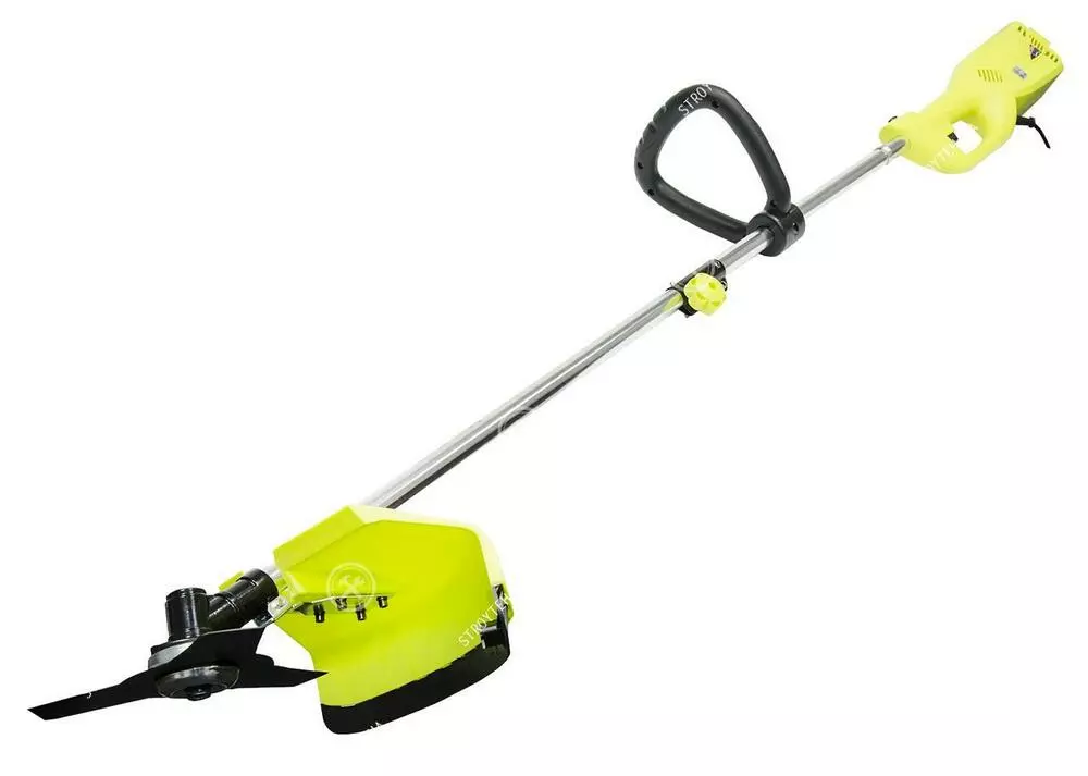 Электротриммер оснащен основной и вспомогательной рукояткой D-образной формы. Для максимально удобного использования предусмотрен наплечный ремень, который снимает нагрузку с рук пользователя, равномерно распределяя её на плечи и спину. В качестве защиты использован широкий пластиковый кожух особой формы, предотвращающий попадание срезанной травы и других мелких частей на тело оператора. Особенности: Удобная разборная конструкция Низкий уровень шума и вибрации Простота в обслуживании Усиленный редуктор Регулируемая по высоте ручка Легкий вес