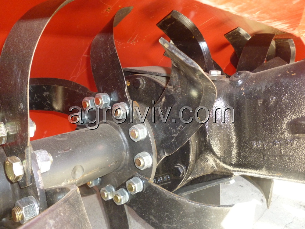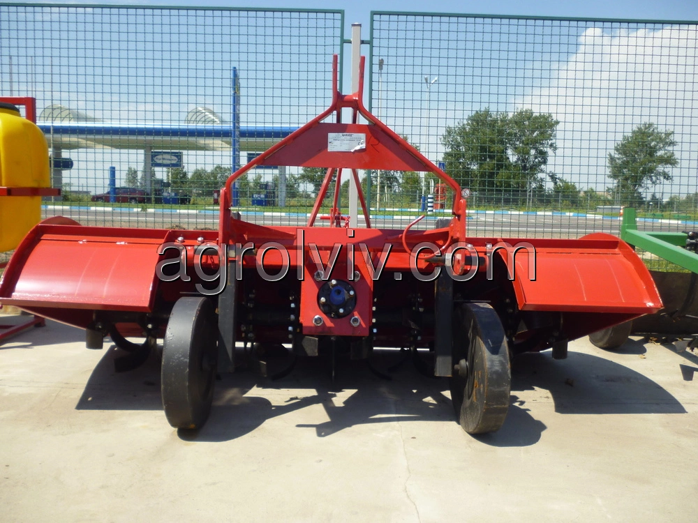 На вращающемся рабочем вале на расстоянии 225 мм закреплены диски с пластинчатыми угловыми ножами. Интенсивность взламывания глыб регулируется подвижным задним кожухом. Поднятие кожуха увеличивает размеры частиц измельченной почвы, а его опускание вызывает уменьшение частиц измельченной почвы в результате ударения почвы о кожух. Частота вращения фрезы 265 об/мин. Для привода почвофрезы необходимо применять шарниро-телескопический вал с предохранительной муфтой для обеспечения прочности и надёжности передачи.