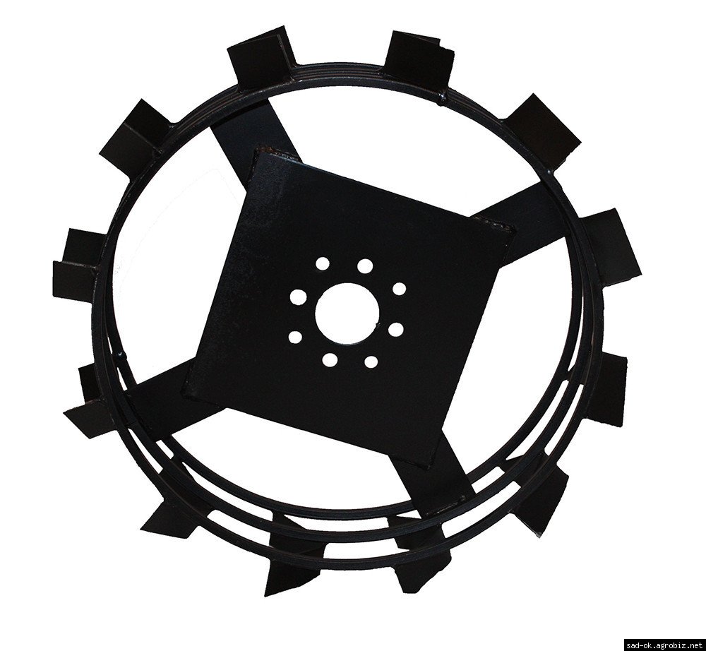 Грунтозацеп (∅560мм) агрегатируется с мотоблоком "Зубр". Используется для улучшения сцепления с почвой. Колеса устанавливаются парами на вал редуктора мотоблока.