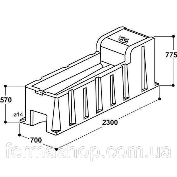 Длина поилки 230 см, ширина 70 см, высота 77,5 см.