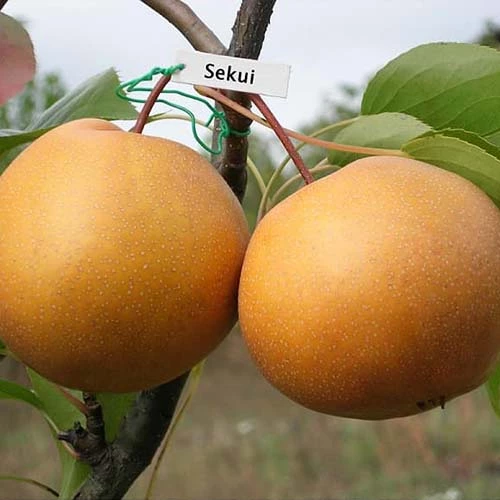 Груша азіатська Секу / Sekui / (Наші) - відрізняється компактною кроною, великими плодами, яблоковідной форми. Сорт осіннього дозрівання, збір врожаю з третьої декади вересня.Дерево виростає до 2 м заввишки, сила росту не велика до 30 см в рік, крона пірамідальна властива колонних дерев. Плоди бронзового забарвлення, великих розмірів, кулястої форми. М'якоть приємного незвичайного смаку, з сильним ароматом, кремового забарвлення, масляниста. Сорт Азіатської груші характеризується відмінною засухоустойчивостью, високою стійкістю до захворювань.
