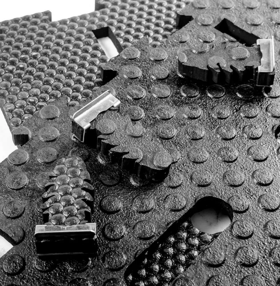Наша компанія приймає замовлення на виготовлення покриттів будь-якої форми та розміру. Для виготовлення використовується високоякісна зносостійка гума. Має шипований профіль, що забезпечує ідеальну еластичність.Під замовлення гумове покриття може виготовлятися з рівним краємо або типу «пазл». Кріплення надійні, не порушують бетонні грати.