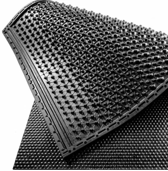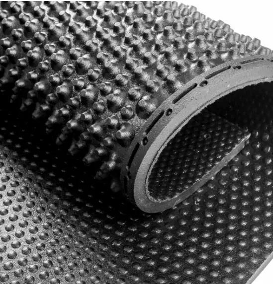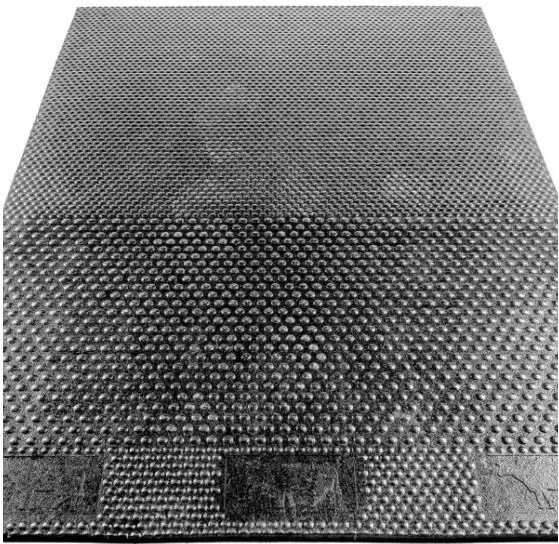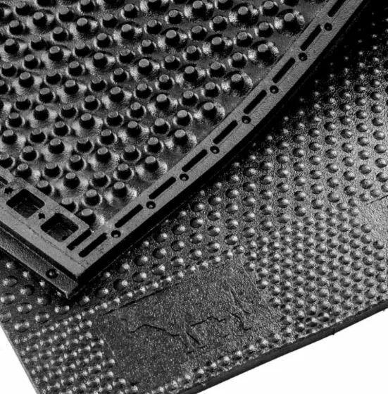 Гумове покриття для підлоги підходить для ферм. Виготовляється з очищеної та переробленої гумової суміші з автомобільних шин. Покриття стійке до негативних середовищ, вологи та перепадів температур. Забезпечує комфортні умови утримання худоби у стійлі та полегшує догляд за нею.