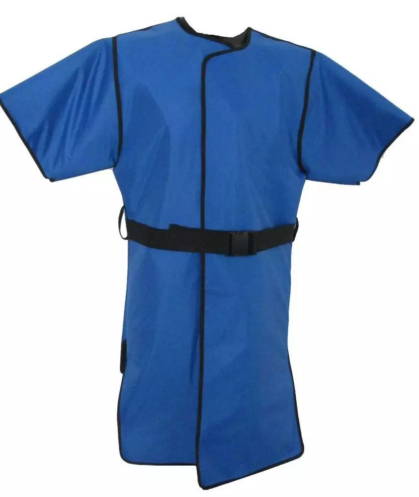 Халат одягається перед проведенням рентгенологічного дослідження і закріплюється на поясі за допомогою замка або липучки.