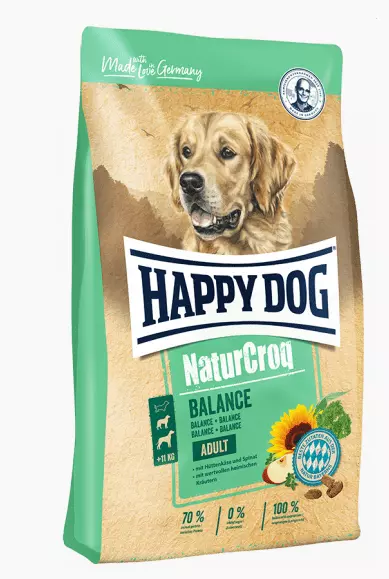 Сухий корм Happy Dog NaturCroq Balance – якісний недорогий корм для дорослих собак всіх порід. Легко засвоюваний повнораціонний корм преміум-класу NaturCroq Баланс ідеально підходить для дорослих собак з нормальною потребою в калоріях. Унікальна суміш крокет з неповторним смаком! Корисна рецептура з домашнім сиром, шпинатом і дріжджами благотворно впливає на травлення і роботу кишечника. Завдяки цьому NaturCroq Баланс ідеально підходить і для всіх чутливих собак.