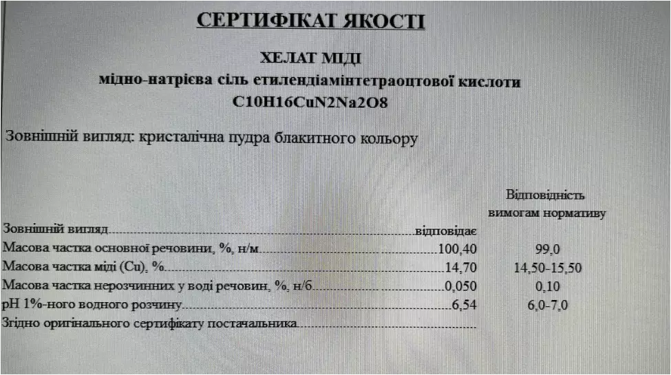 Хелат міді (ЕДТА) 15% (мішок 25 кг)