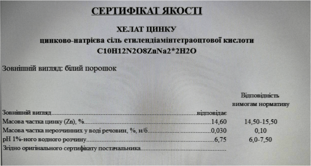Хелат цинку (ЕДТА) 15% (мішок 25 кг)