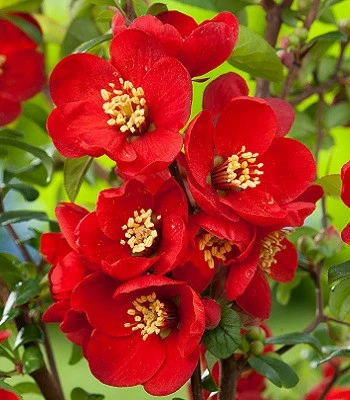Хеномелес Crimson and Gold стані перлиною Вашої колекції декоративних рослин! Особливий за рахунок темно - червоних поодиноких квітів з виразними жовтими тичинками, які пізніше перетворюються в запашні їстівні плоди. Плоди яблоковидні (діаметр 5 см, вагою близько 40-80 г), зелені, пізніше жовті, дуже тверді і ароматні. Досить невибагливий і морозостійкий, проте не виносить засолення і кислих грунтів, краще росте, квітне і плодоносить лише на сонячних, захищених від вітру ділянках з родючим грунтом і достатнім поливом, особливо в літню спеку. Відмінно виглядає на альпійських гірках, а також як грунтопокривна рослина, для живоплоту. Плоди в свіжому вигляді вважаються аналогом лимона (їх так і називають «північний лимон») - стільки ж вітаміну С і при цьому вони мають ананасовий аромат. По - справжньому смачним виходить варення, повидло, цукати, мармелад. Посадка 1-2 шт/м2.