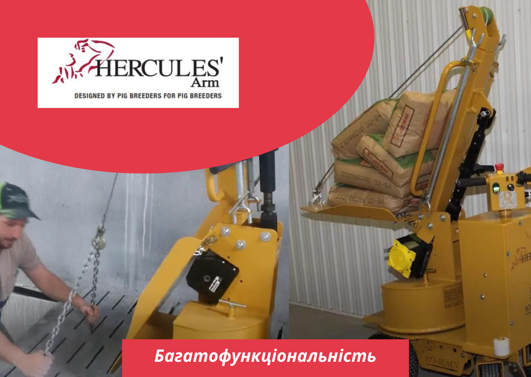 Достатньо одного оператора, щоб витягти важку тушу свині з найтісніших приміщень без ризику заподіяння шкоди персоналу.