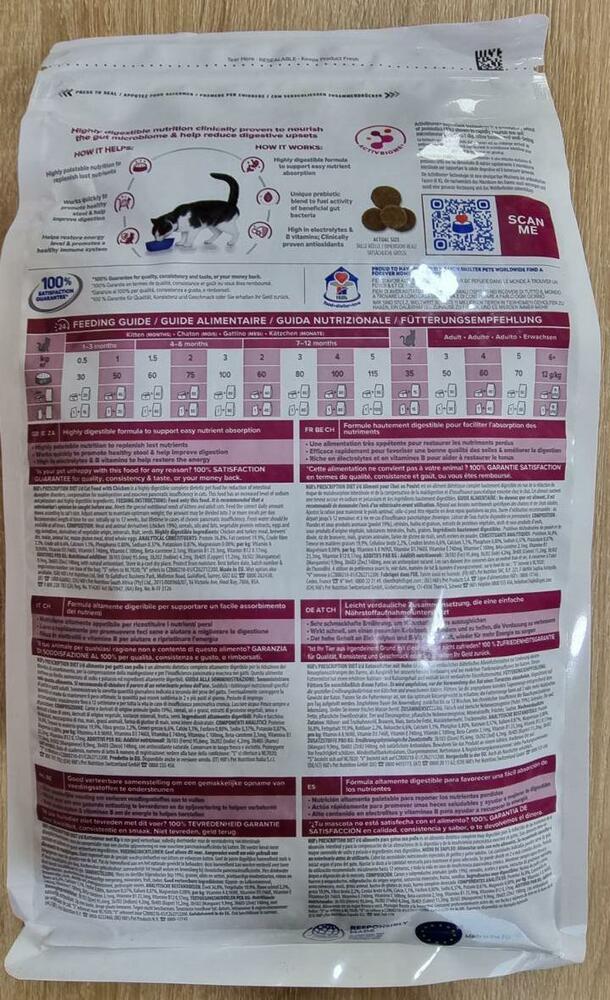 Легкоперетравна, повнорационная дієта зменшення прояви розладів шлунково-кишкового тракту, поліпшення всмоктування поживних речовин у разі порушення травлення і екзокринної недостатності підшлункової залози котів. Цей дієтичний раціон містить підвищений рівень натрію та калію та легкоперетравні інгредієнти.