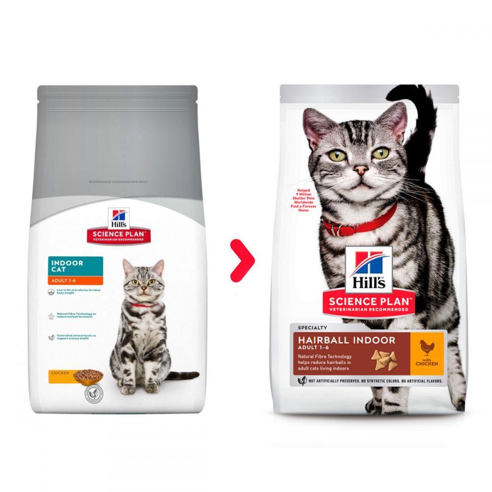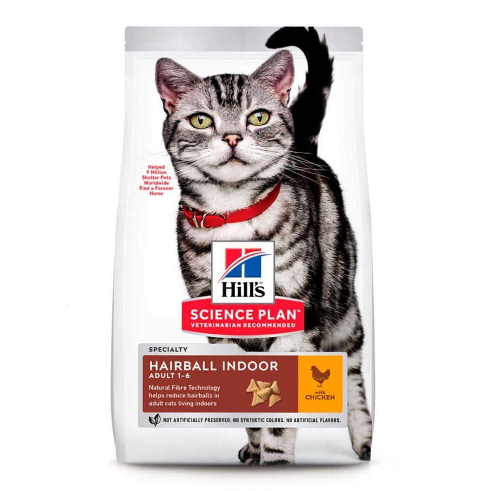 Hill's Science Plan Feline Hairball Indoor Chicken для кішок не залишають приміщення з куркою - повнорационный сухий корм для попередження утворення волосяних грудок у шлунку у дорослих кішок віком від 1 до 6 років. Являє собою комплексне збалансоване харчування, що забезпечує вихованця необхідними вітамінами та мікроелементами.