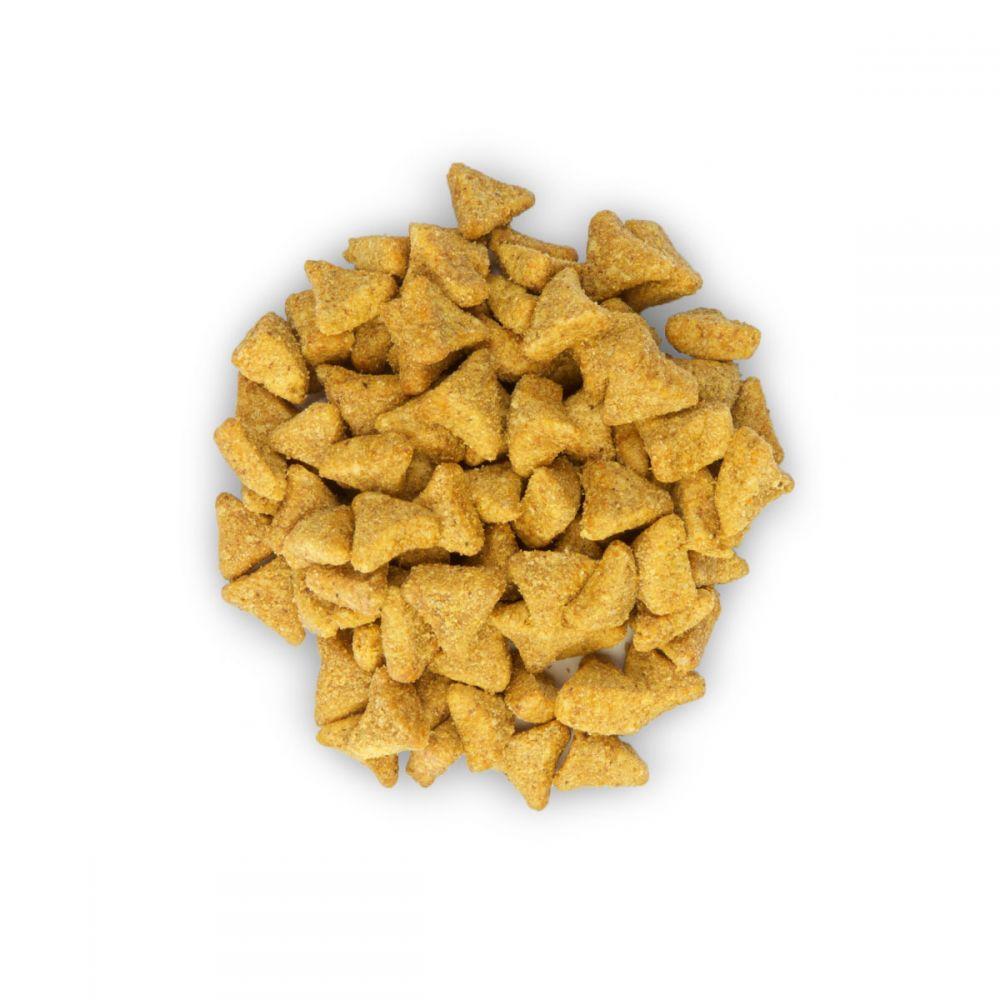 Легкозасвоювані інгредієнти: дегідратоване м'ясо курки та індички, рисова крупа пивоварна, кукурудза, кукурудзяний глютен, тваринний жир, олія.