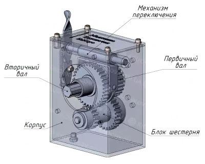 3. Трансмиссия — шестерёнчатая (редукторная),