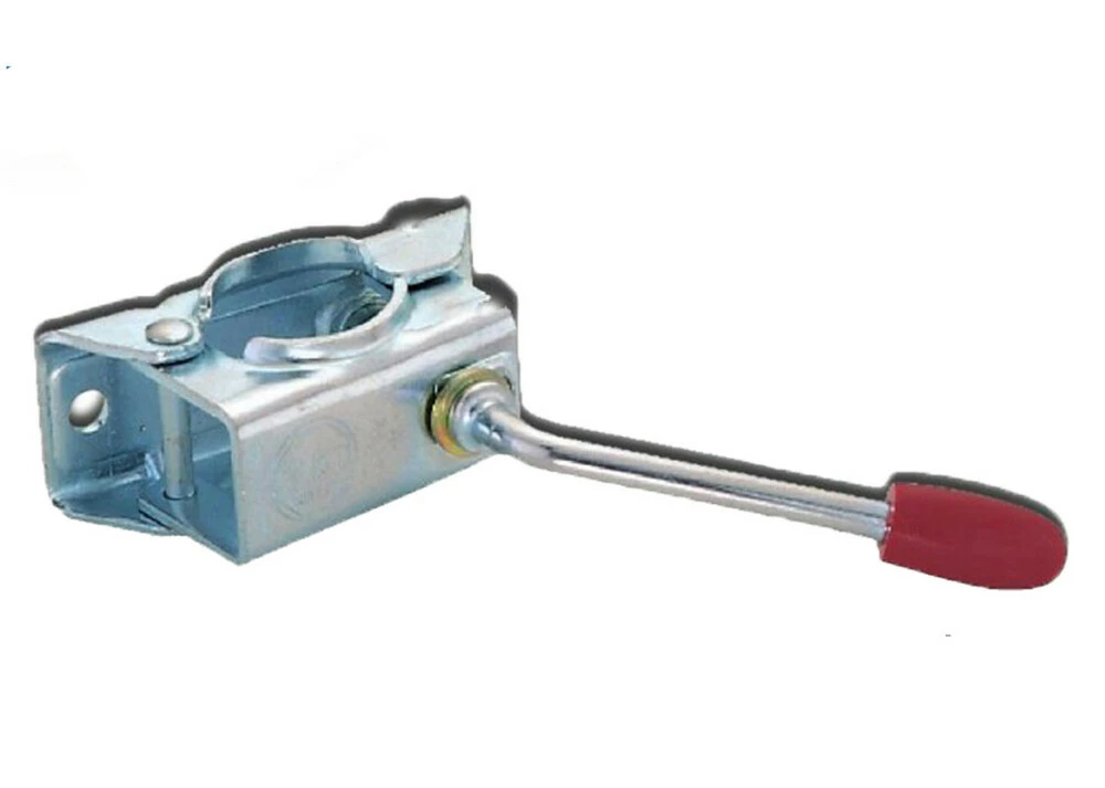 Хомут кріплення опорного колеса призначений для монтажу будь-якого колеса діаметром штока 48 мм. до дишла причепа. Хомут кріпиться до дишла за допомогою 2 болтів М12, а ручка-фіксатор дозволяє надійно зафіксувати опорне колесо.