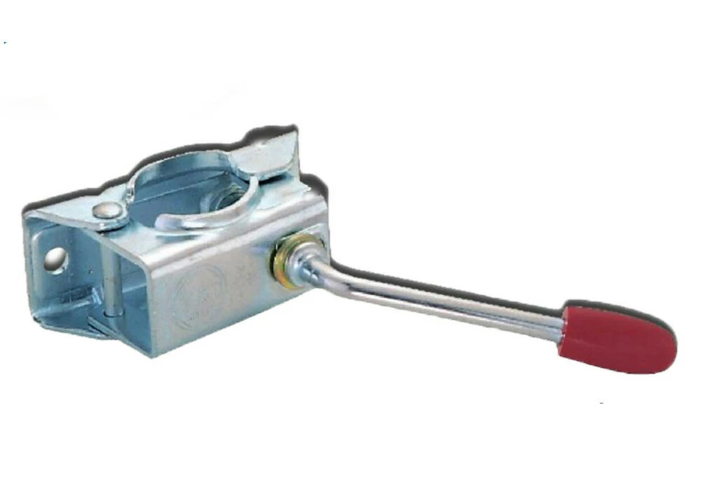 Хомут кріплення опорного колеса з діаметром штока 48 мм, до дишла причепа кріпиться за допомогою 2 болтів М12, а ручка фіксатор дозволяє надійно зафіксувати опорне колесо.