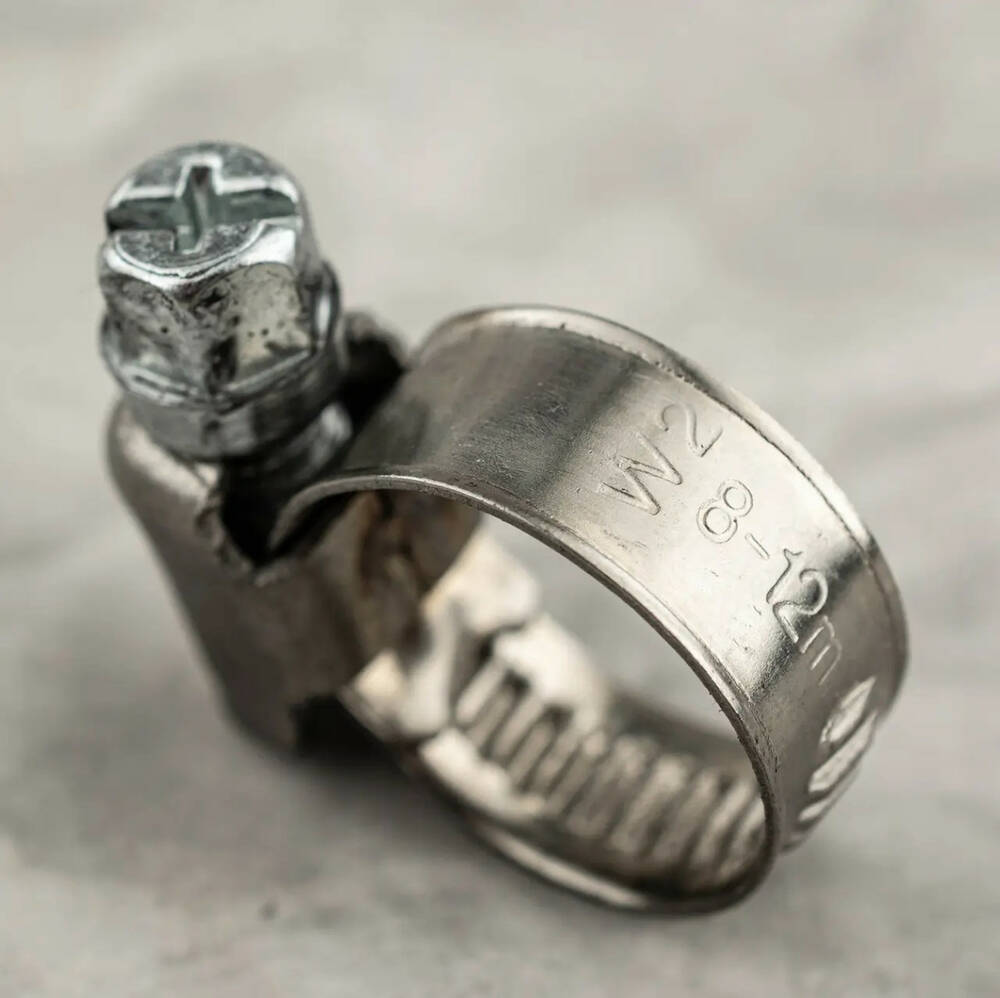 Хомут виготовлений із неіржавкої сталі W2, гвинт — з оцинкованої сталі.