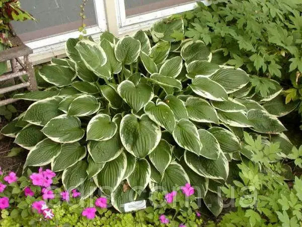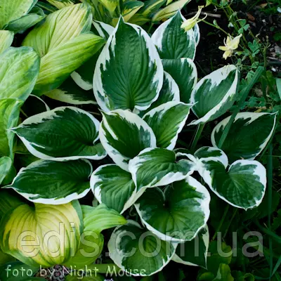 Хоста Форчуна Франси (Fortunei Francee). Одна з кращих белоокаймленных хост. По-перше, тому що зберігає яскравий контрастний колір протягом всього сезону. По-друге, тому що невибаглива до місця посадки - чудово почувається і виглядає і на сонці і в повній тіні дерев. Листя серцеподібне, рельєфні, розміром 21x13 див., блискучі темно-зелені з дуже чистою вузькою білою облямівкою, яка залишається сніжно-білого до осені. Висота куща 55 см, ширина куща до 75-90 див. Квітки блідо-лавандові. Цвіте в липні-серпні.