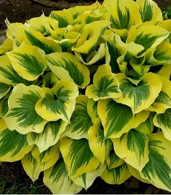 Унікальний широколистий сорт з хвилястими синьо-блакитними листочками та великими кремовими смугами по краях, які немов «перетікають» в центр листя. Навесні смуги мають золотисто-жовтий відтінок, що додає ще більше чарівності цьому сорту. Квітне блідо-лавандовими квітами. Росте на добре дренованих і родючих грунтах. Потребує регулярного поливу. Морозостійкий.