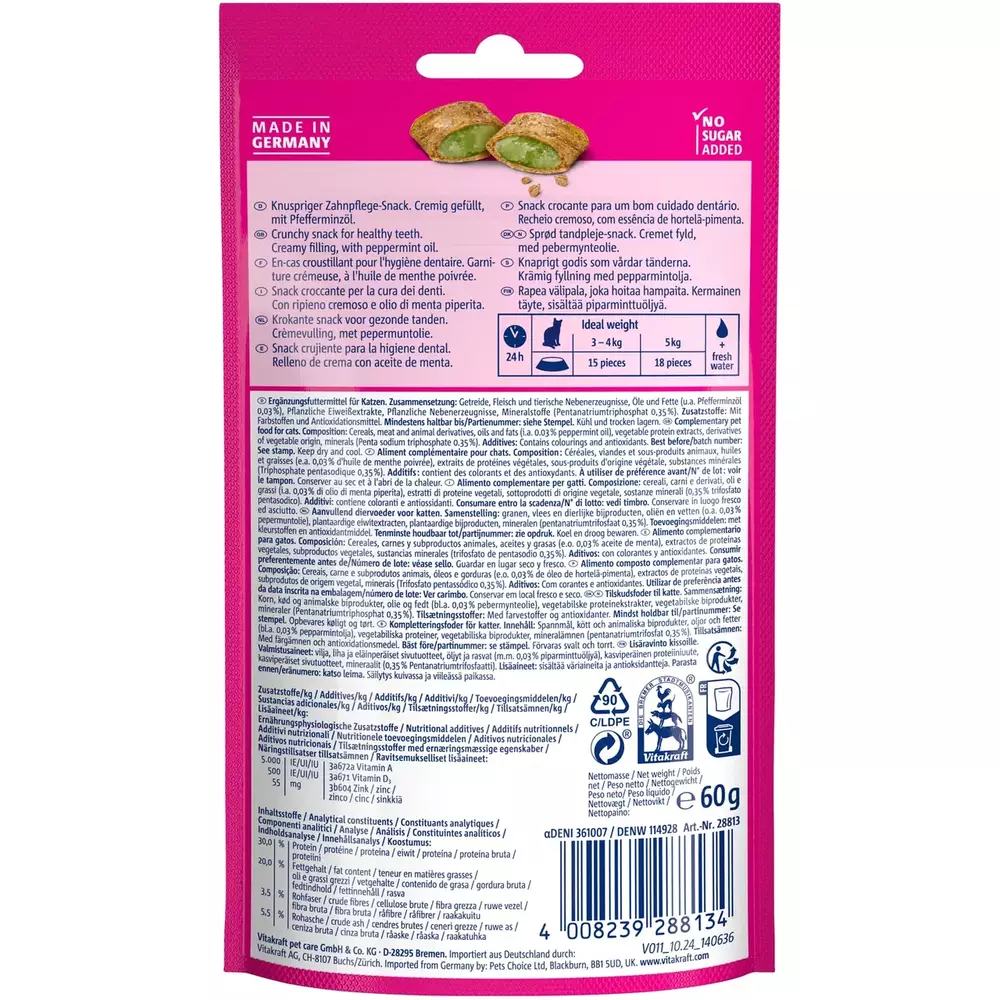 Хрусткі ласощі для котів Вітакрафт Vitakraft Crispy Crunch подушечки з начинкою з м’ятою для догляду за зубами, 60 г