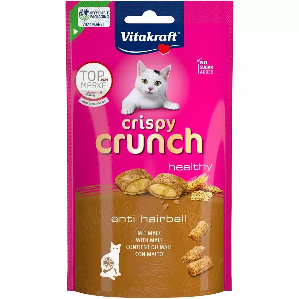 Хрусткі ласощі для котів Вітакрафт Vitakraft Crispy Crunch Anti Hairball з начинкою з солодом від утворення волосяних кульок, 60 г