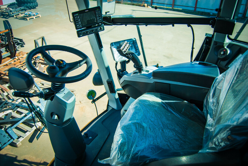 Кабіна – велика, комфортабельна, герметична, звукоізольована, опалювана. Максимальна безпечність для оператора з системою фільтрації 4-го рівня. Панорамний огляд з місця оператора полегшує управління процесами.