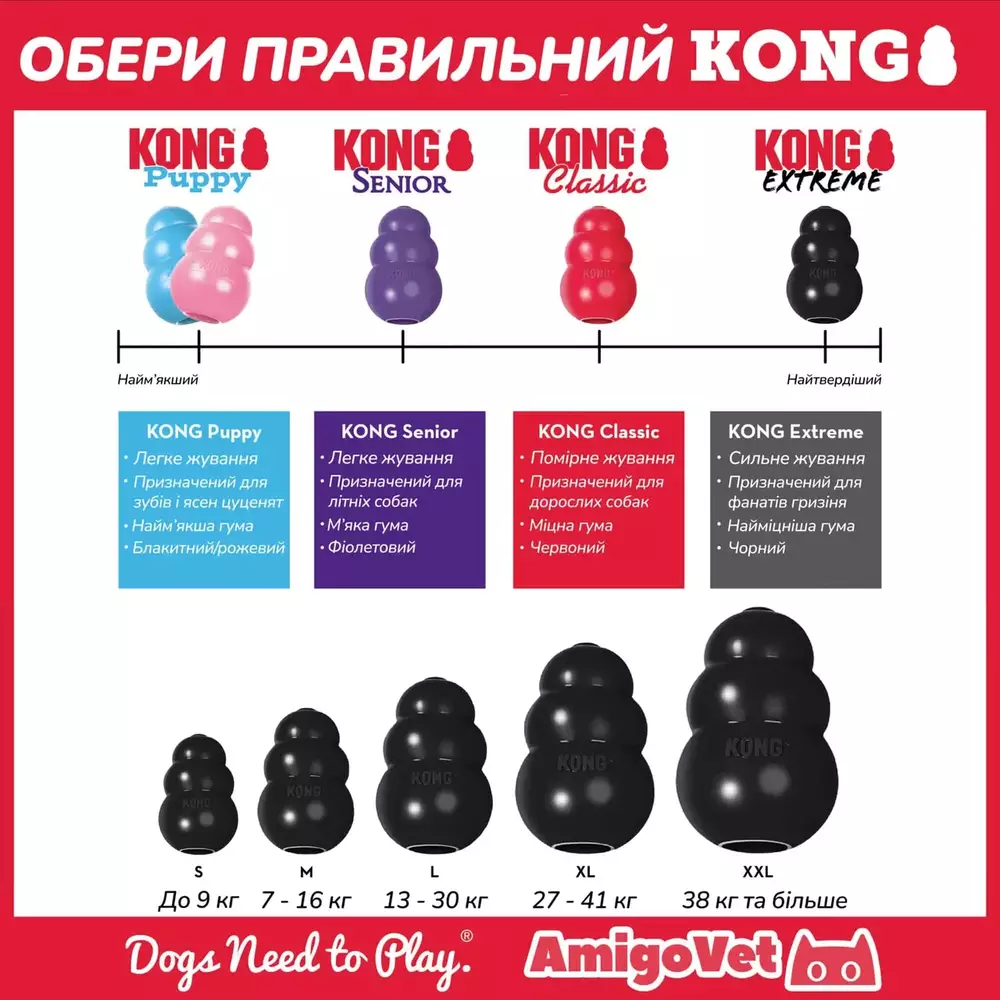 KONG Extreme суперміцна груша-годівниця є найміцнішою версією оригінальної іграшки KONG. Її надміцна, надцупка чорна гума рекомендована для найзапекліших любителів жування. Виріб спеціально виготовлений для собак, які мають дуже сильні щелепи. Іграшка подобається собакам своїм смаком, запахом і текстурою, вона дуже зручна у використанні, тому її рекомендують ветеринари та кінологи всього світу.