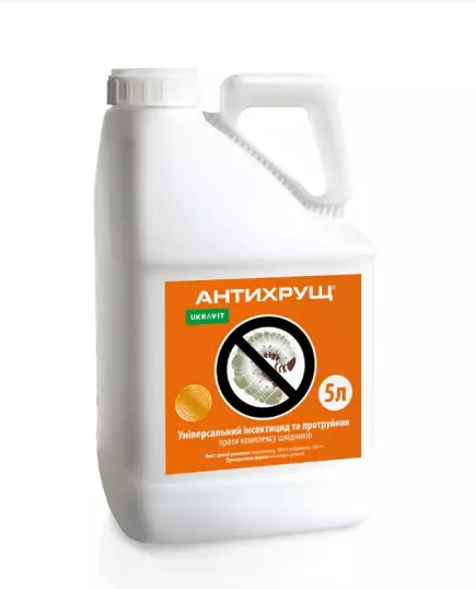 Контактно-системна дія. До складу АНТИХРУЩ входять дві інсектицидні діючі речовини нового покоління, які взаємодіють та доповнюють одна одну. АНТИХРУЩ — інсектицид контактно-кишкової дії, який вражає центральну нервову систему шкідливих комах, блокуючи функції життєдіяльності, що призводить до їх швидкої загибелі. Крім цього, АНТИХРУЩ опосередковано знижує й зараження рослин хворобами, оскільки ефективно діє на шкідників, які не тільки пошкоджують культуру, але й створюють сприятливі умови для розвитку вторинної грибкової та вірусної інфекції. Таким чином, завдяки своїй комбінованій дії АНТИХРУЩ забезпечує надійний захист цілого ряду культур від комплексу шкідників.