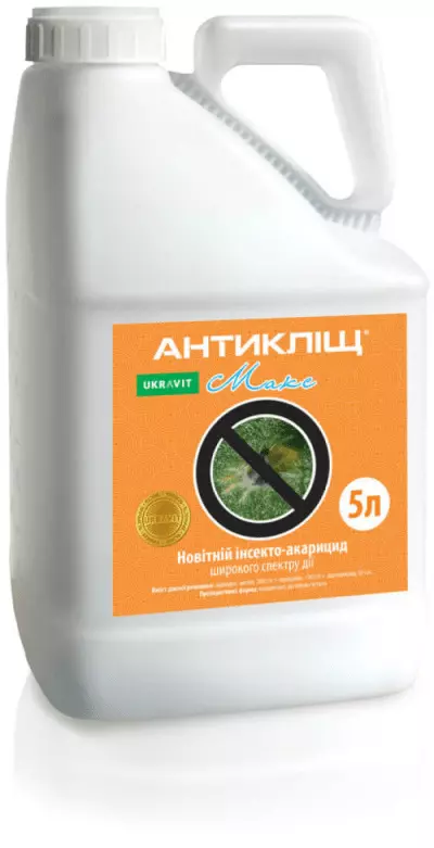 Інсектицид «Антикліщ Макс» – засіб захисту сої, яблунь і декоративних культур від широкого спектра комах-шкідників. Особливо ефективне обприскування проти кліщів, совки та попелиці. Препарат випускається у вигляді концентрованої суміші у пластиковій тарі різної місткості. «Макс Антикліщ» має тільки позитивні відгуки користувачів в Україні.