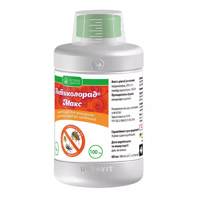 Антиколорад Макс - високоефективний контактно-системний інсектицид подвійної дії проти спектру шкідників з акарацидними та репелентними властивостями.