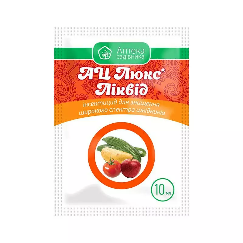 Особливості використання: Робочий розчин препарату застосовують у рекомендованих нормах шляхом суцільного обприскування в період вегетації за появи шкідників (при перевищенні їх рівня ЕПШ). Роботи рекомендовано проводити в ранкові – (до 10) і вечірні (18-22) години при мінімальній швидкості вітру (не більше 2 м/с), у теплицях – за належної вентиляції . Необхідно забезпечити достатнє і рівномірне покриття оброблюваної культури без стікання робочого розчину. Оптимальна температура застосування – +10…+25°С. Не рекомендовано застосовувати інсектицид АЦ Люкс Ліквід, коли культури перебувають у стресовому стані (під час посухи, надмірного зволоження ґрунту, ураження хворобами, пошкодження приморозками тощо). За даними багаторічних досліджень, обробки можливо проводити у вечірні, нічні та ранкові години (коли відсутній активний літ запилювачів) в період цвітіння ріпака та плодових насаджень.