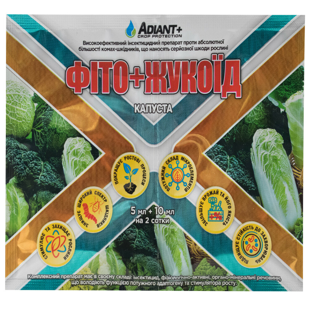 Двокомпонентний препарат призначений для захисту капусти від широкого спектра шкідників і забезпечує активну підтримку росту та плодоносіння. Інсектицид належить до інноваційних засобів з системно-контактним впливом на організм комахи. Препарат неорганічного походження. Висококонцентроване добриво Фіто + в складі препарату має антистресовий ефект, а також відновлює ріст і підвищує якість врожаю.