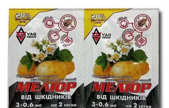 Інсектицид Меліор. Контактно-системний препарат з широким спектром дії. Застосовується на овочевих, плодових культурах і трояндах для захисту рослин від комах-шкідників. Діючі речовини — імідаклоприд і лямбда-цігалотрін. Імідаклоприд відноситься до системних інсектицидів — проникає в судинну систему рослин, завдяки чому рослина стає токсичним для комах. Лямбда-цігалотрін володіє контактною, кишковою та залишковим дією. Речовина протягом години проникає через кутикулу листка і після не змивається опадами. Через 2-3 часа после обработки, у вредителей (в том числе и скрытно живущих) наступает паралич, они перестают питаться и вскорости погибают.