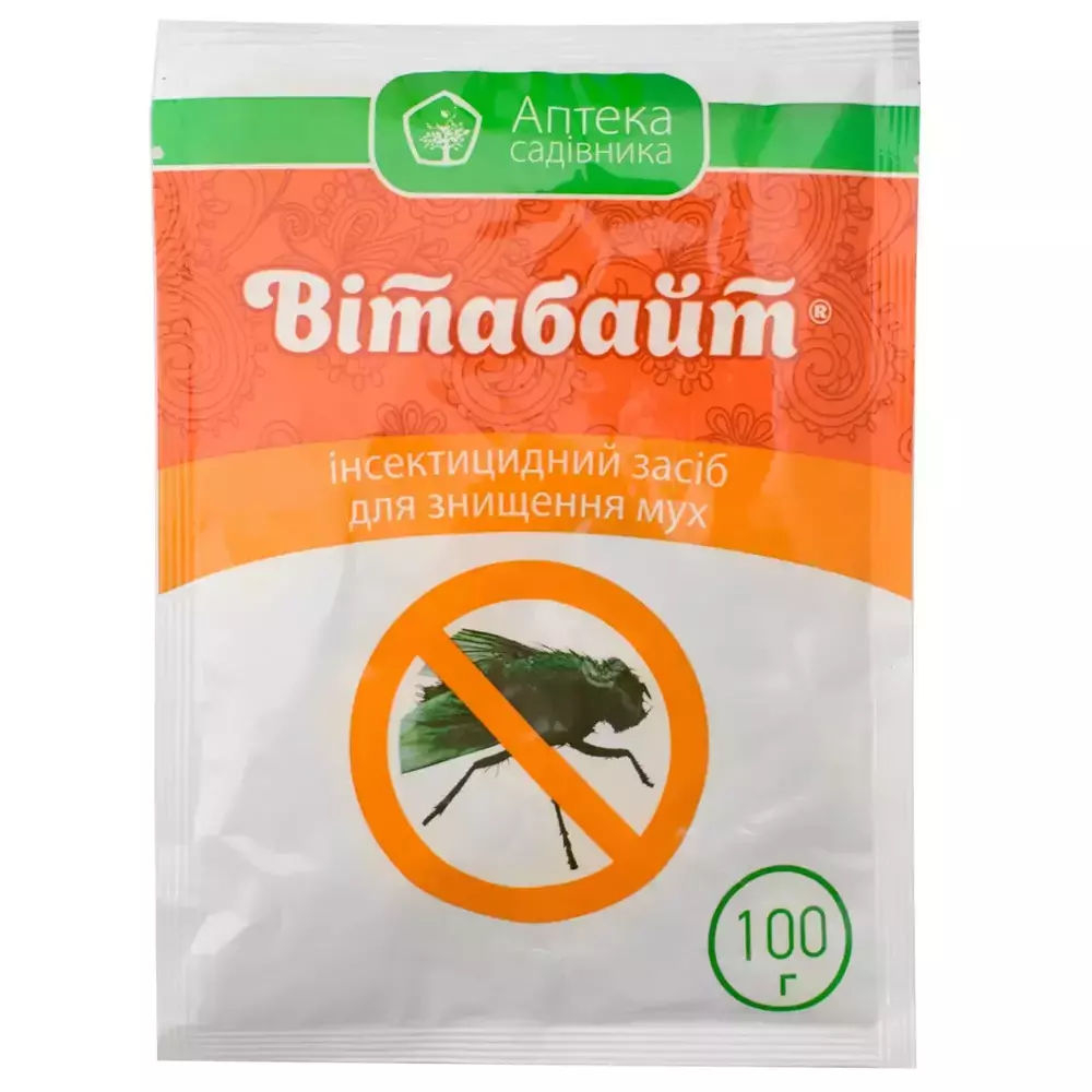 Вітабайт – це інсектицидний засіб контактно-кишкової дії в гранулах, який застосовується для знищення комах, таких як мухи. Діюча речовина в препараті – імідаклоприд, блокує постсинаптичні рецептори у комах, порушуючи фізіологічну іннервацію нервів. Це призводить до ураження центральної нервової системи комах, викликаючи у них параліч та конвульсії, внаслідок чого вони гинуть. Привабливість Вітабайта для шкідливих комах забезпечується феромонами, які у складі препарату. Комахи помирають від дії препарату через 3-5 днів після контакту з ним. Інсектицидний засіб має залишкову активність та миттєвий ефект протягом 14-28 днів.