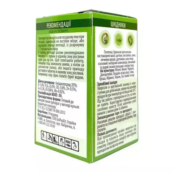 Препарат діє вже через короткий час після внесення у ґрунт, знищуючи шкідників на всіх стадіях їх розвитку.