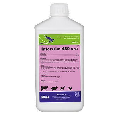 У період застосування Інтертрим – 480 ® тваринам не можна давати препарати, що легко відщеплюють сірку (глауберової сіль та ін), аміноглікозиди (гентаміцин, неоміцин), а також міорелаксанти та анестетики через загрозу розвитку паралічу дихальних м'язів.