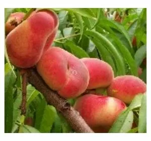 Плоды: плоские, массой 100-120 г, с покрывным красным румянцем. созревают в середине августа. Мякоть кремовая, сочная, сладкая до самой косточки. Дегустационная оценка-4,8 балла.