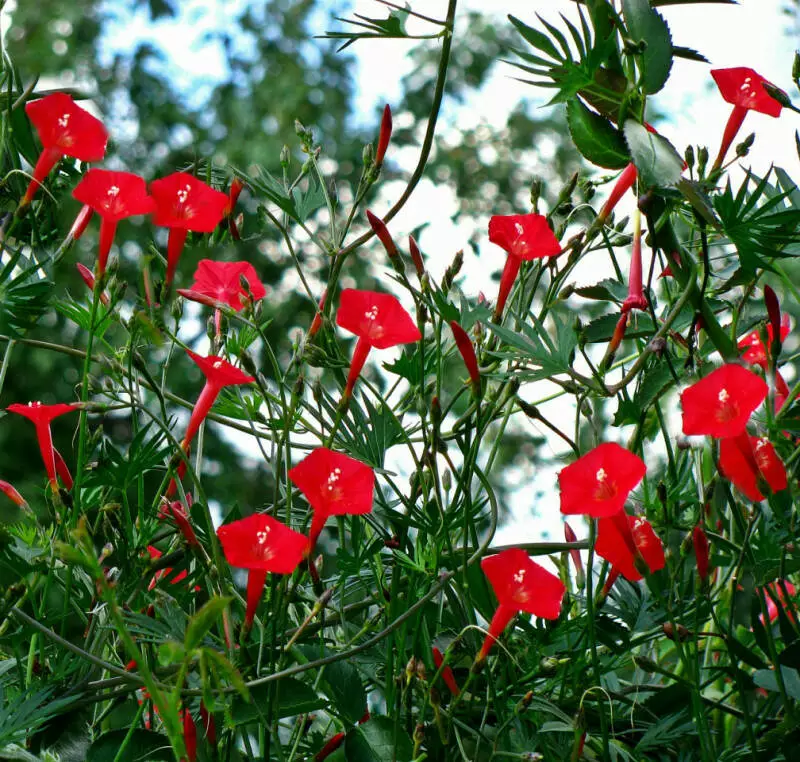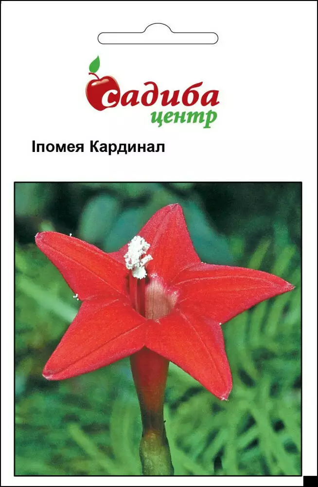 Іпомея Кардинал - оригінальна однорічна в’юнка рослина. Листочки перисті, квіти дрібні, яскраві, стрункі, трубчасті, червоного кольору. Довжина стебла – 200 см.