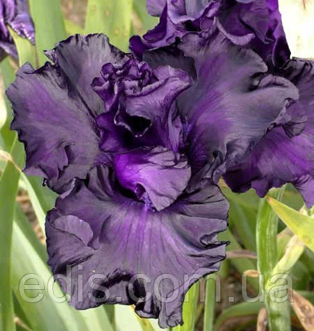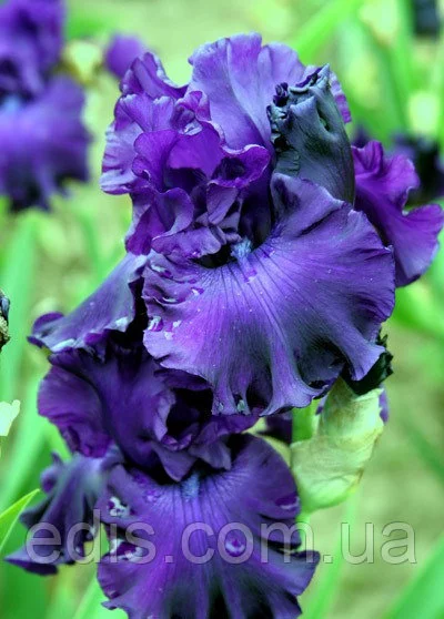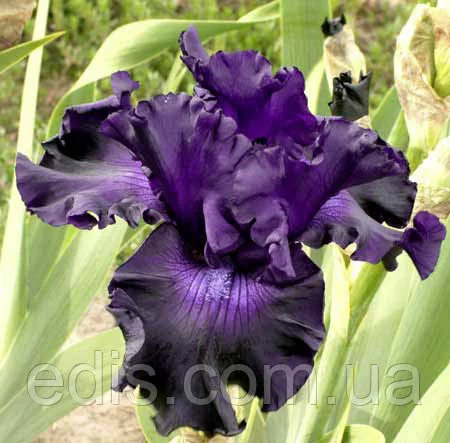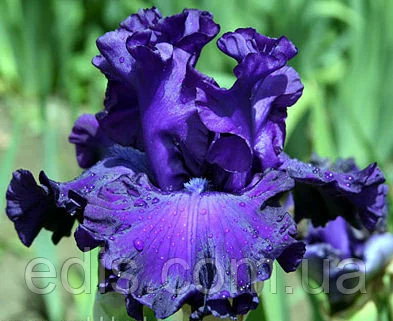 Iris Germanica (Бородатий) Mountain Majesty - містичний Російська транскрипція назви: Маунтін Мэджести Колір: глибокий чорнильно-фіолетовий з чорнотою, оксамитовий. Борідка фіолетова. У вечірніх сутінках виглядає чорним. Висота 90 див. Термін цвітіння: середньо-пізній Оригінатор - Гіо, 1994, США.
