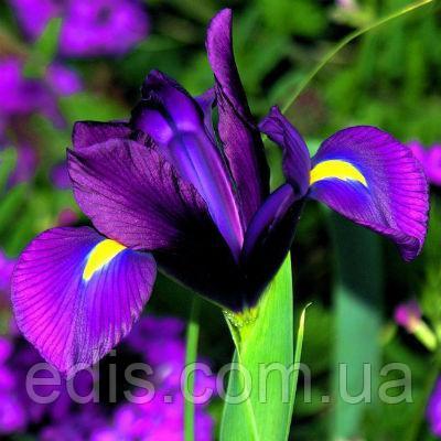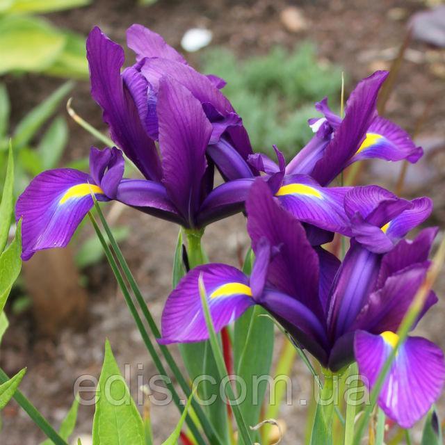 Голландські іриси або Ксифиумы (бот. Xiphium) – зимостійкі цибулинні іриси (бот. Xiphium). Висота рослини 40 см Розмір квітки 8 див. Сорт Пурпл Сенсейшн Має насичено-пурпурні квітки з синім підсвічуванням на внутрішніх частках оцвітини і навколо жовтого язичка на зовнішніх частках.