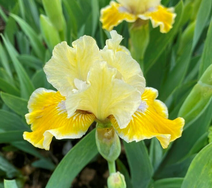 Ірис карликовий "Pierrot" — це життєрадісний сорт, що рясно покриває кущ квітами. Яскраві біло-жовті суцвіття мають дуже ошатний вигляд, а листя прикрашають посадку і до, і після цвітіння. Фарба верхніх часточок білий із прозеленню, на нігтиках короткі ковтуни кольору бордо. Надрильцеві гребінці білі, з бордово-рожевим від основ. Нижні частки зі щільним жовтим покриттям, білими променями та неширокою облямівкою. Бороди сніжно-білі та мокрі. Ірис Pierrot — дуже декоративний весняний сорт. Основними характеристиками ірису: барвистість суцвіть, ефектність листочків; краса зовнішнього вигляду впродовж сезону; швидкість бутонізації; початок цвітіння відбувається на кілька тижнів раніше, ніж у високорослих представників; рясність бутонів; витривалість. Карликовий ірис цвіте досить нетривалий період, проте, ландшафтні дизайнери вважають його одним із фаворитів на ділянці.