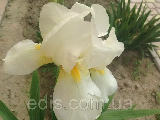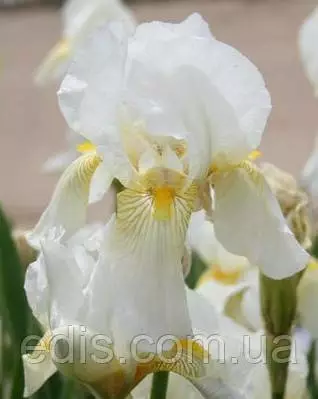 Один із найраніших сортів у нашій колекції високих бородатих ірисів. Забарвлення однотонне молочно-біле. На плечах жовтий малюнок. Борідка жовта. Квітка середнього розміру. Історичний сорт, створений у 1935-му році. Як усі старовинні сорти, відрізняється особливо міцним імунітетом до хвороб та терпимістю до несприятливих умов, поганого ґрунту тощо.