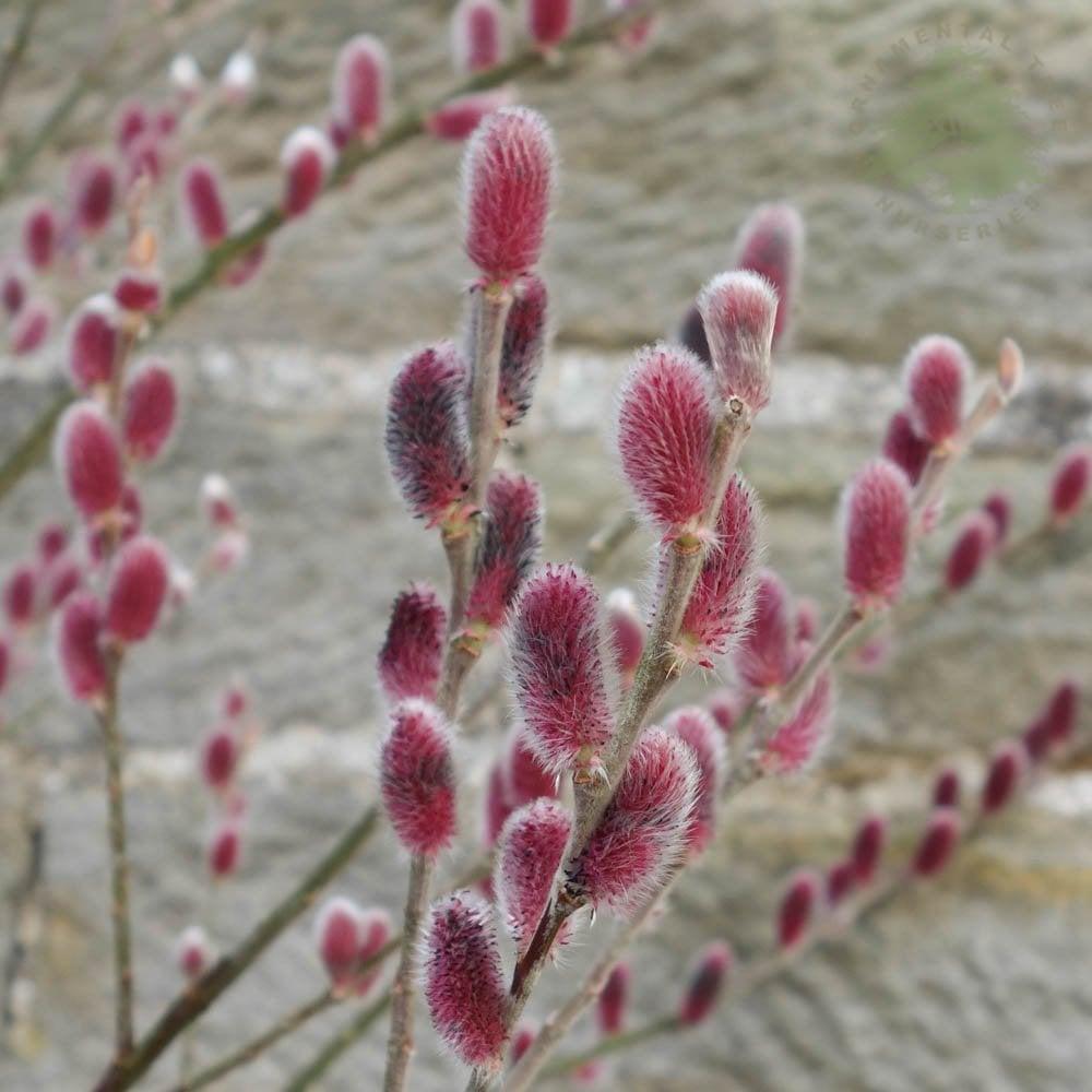 Найбільша прикраса сорту - пухнасті червоно-рожеві суцвіття (основа), що з’являються в лютому.