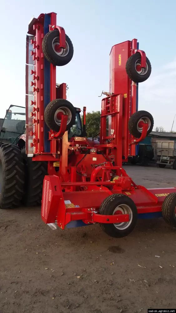 Транспортная ширина 3,5 м. Мульчер оснащен гидравлическим замком для надежной фиксации боковых мульчеров в вертикальном положении при транспортировке, а также гидравлическая регулировка заднего мульчера.