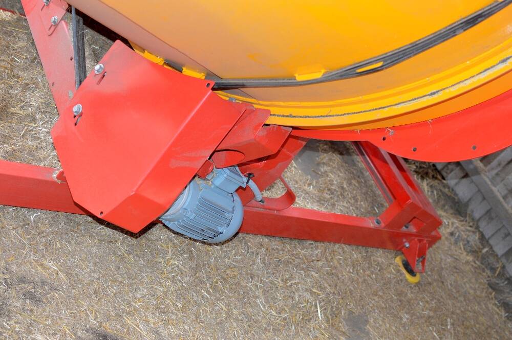 Агрегат является стабильной поддерживающе-приводной конструкцией и приводит в движение машину посредством электрического двигателя с ременным приводом, моторедуктором и преобразователем частоты для регулировки вращения барабана. Регулируемый угол наклона базы позволяет выполнять точную настройку машины и ее оптимальную, безопасную эксплуатацию.