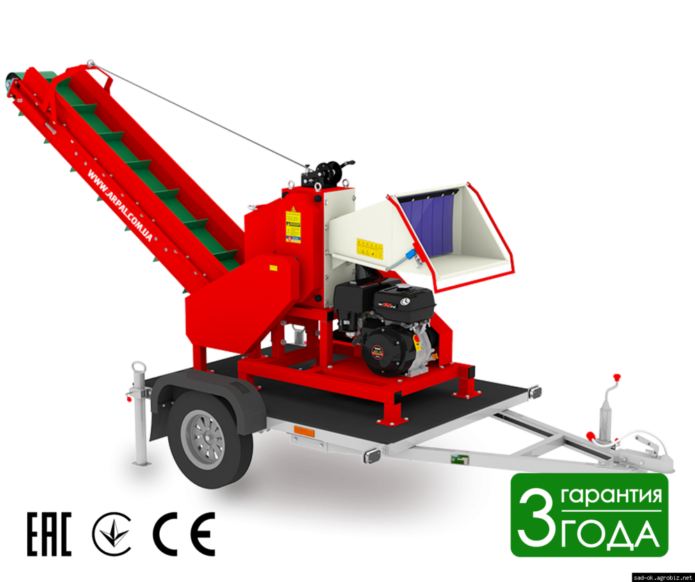 Измельчитель веток Arpal? 120БД-К с транспортером и бензиновым мотором, 18 л.с. (диаметр веток 120 мм)?