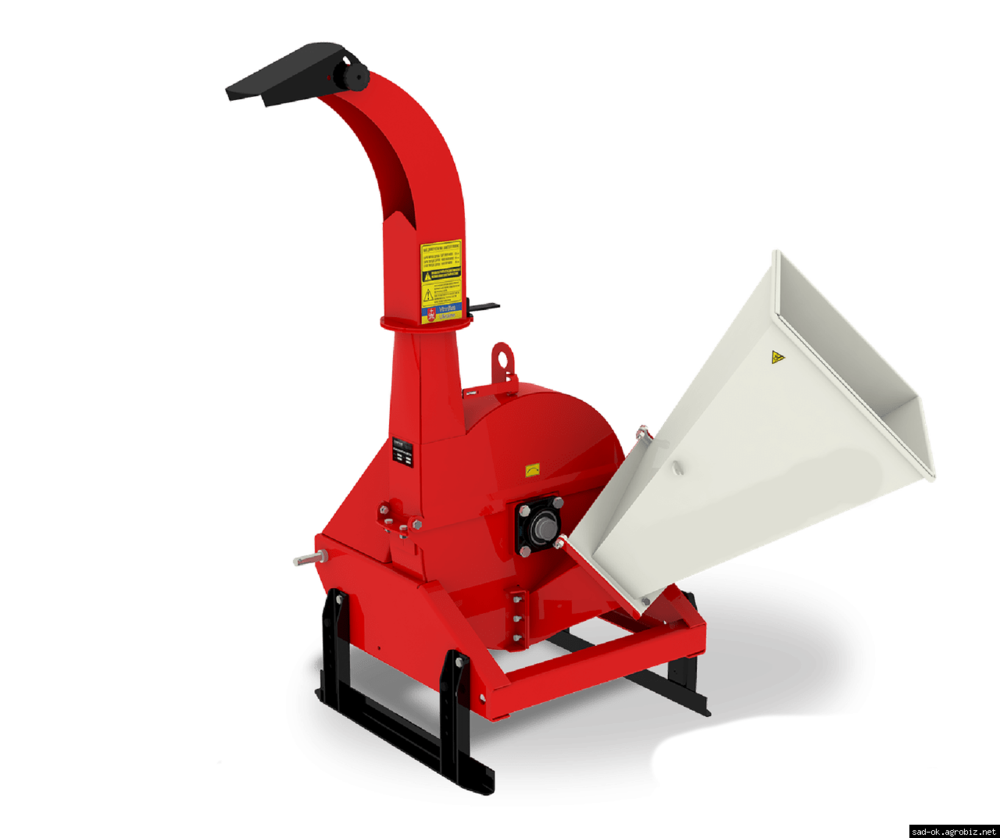 На щепорезе установлен выгрузочный раструб который позволяет менять направление потока щепы в двух плоскостях и вращается на 360?. За счёт поднятия щепореза на сцепке гидравликой можна увеличивать высоту загрузки. Входной бункер оборудован шторкой из прозрачного ПВХ для защиты оператора от щепок в процессе работы.