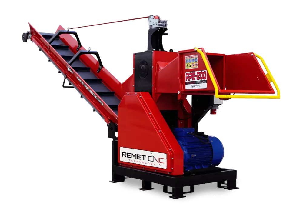Мобильный измельчитель RPE-200 PROFESSIONAL оборудован высококачественным надёжным электродвигателе мощностью 22 кВт. Рама изготовлена из металлического профиля с широким опорным промежутком, удлинённым бункером с армированный профилем, раскладным удлинённым раструбом подачи древесины. Измельчитель оборудован защитным выключателем. Предназначен для переработки древесных отходов и ветвей диаметром до 15 см. Переработанная древесина является превосходным и экологически чистым топливом, идеально подходящим для топки.