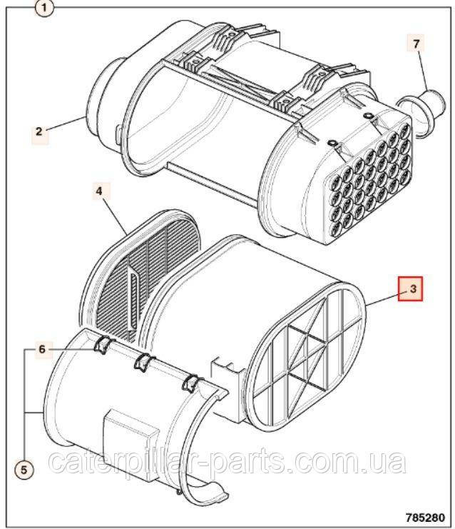 Фільтр призначений для очищення повітря внутрішнього згорання, що надходить у двигун, будівельної спецтехніки, фронтальних навантажувачів, екскаваторів, бульдозерів. Фільтр складається з двох циліндричних агрегатів з металевою сіткою вставлених один в одного, всередині розташований паперовий елемент, що фільтрує, і гумовими ущільнювачами для кращого прилягання фільтра до короба.