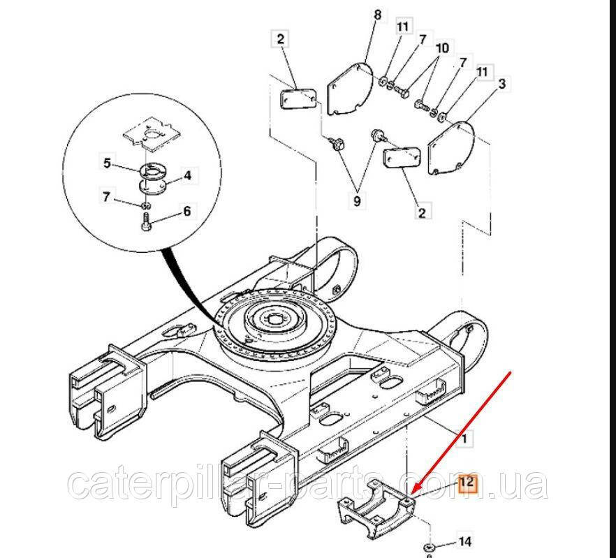 Кінцевий напрямний щит гусеничної стрічки для захисту ланцюга та опорних котків від сміття та бруду екскаватора JCB. Захист опорного ролика (напрямний ланцюга) на екскаватор JCB JS220 (200, 210), служить для запобігання зісковзування ланцюга з роликів та захисту ролика від пошкодження.