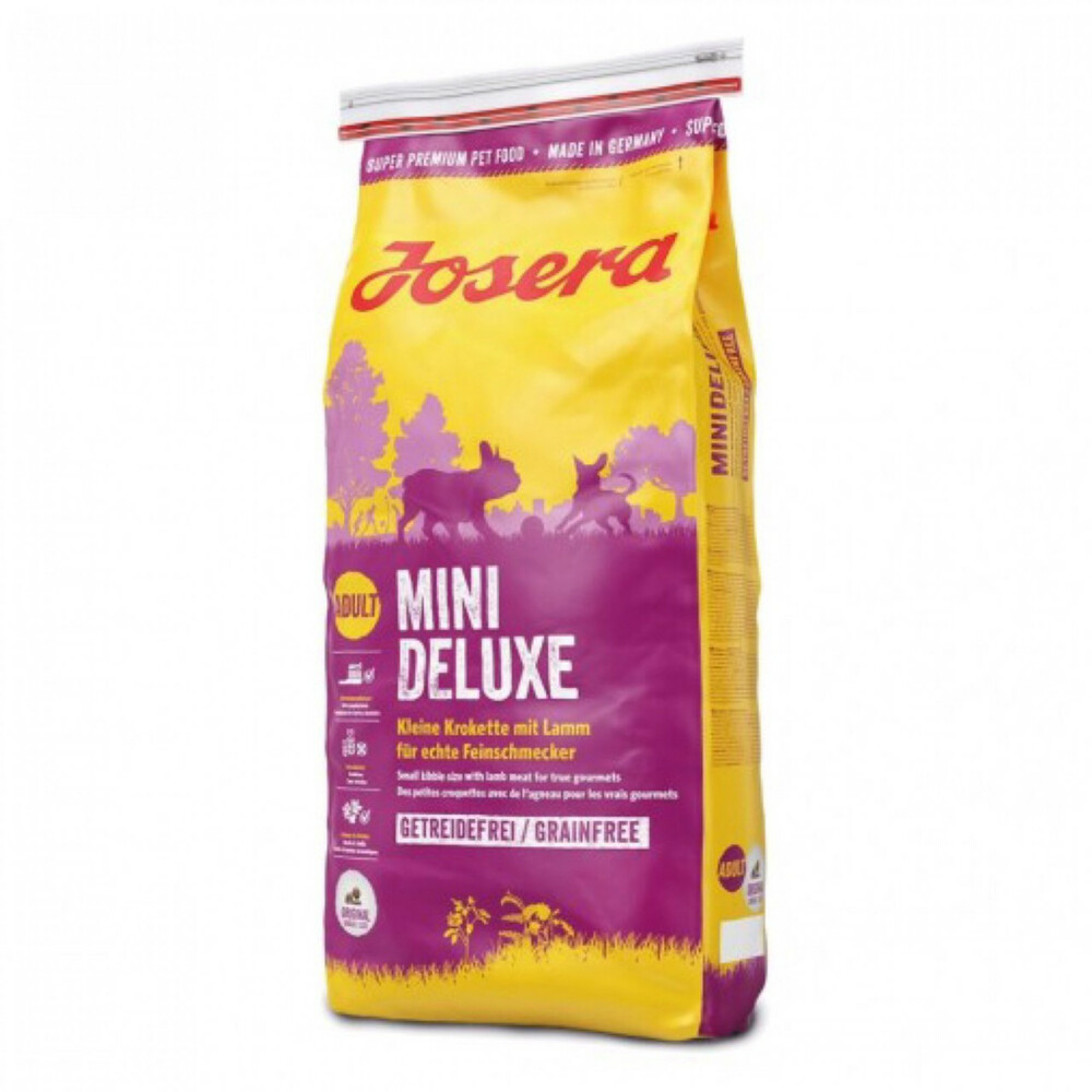 JOSERA MiniDeluxe цей корм пропонує нашим маленьким шибеникам смачну та водночас дуже добре перетравну їжу без зернових, замість цього з овочами, травами та плодами і великою кількістю м’яса ягня.